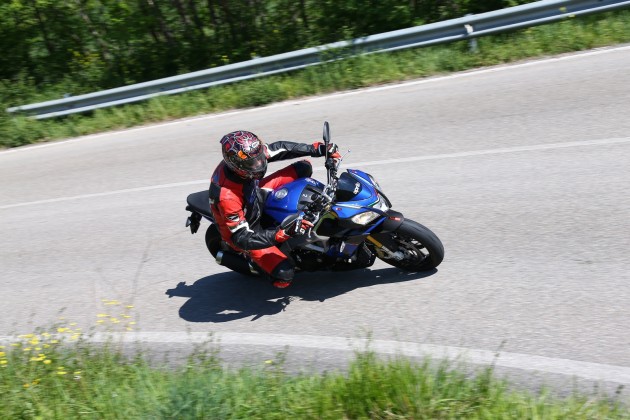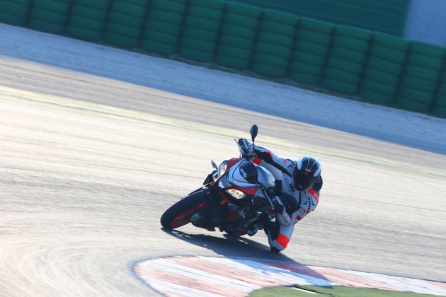 Il problema, casomai, può essere proprio il pilota stesso, perché basta farsi prendere la mano e ruotarla qualche grado e secondo di troppo per trovarsi a velocità doppie o addirittura triple rispetto a tutti i limiti di velocità. Non è una battuta a effetto, su una strada statale con limite di 70 km/h è questione di istanti ritrovarsi a 210 km/h. Questo perché il nuovo motore ha dei medi regimi molto più robusti, tanto che a 8.000 giri ci sono 20 cavalli più di prima, se poi si continua fino agli 11.000, dove si trova la potenza massima, la spinta diventa davvero furiosa. Ma anche avendo la possibilità di superare i 200 orari, la quasi totale assenza di carenatura dà origine a una lotta senza quartiere tra il centauro e il flusso dell’aria, che tenta di disarcionarlo con infaticabile costanza. Tra le curve, invece, c’è da godere e si riesce a mantenere, con facilità disarmante, un “passo” precluso a molte altre moto. Come dire… rimettendole le carene è pronta per la pista.