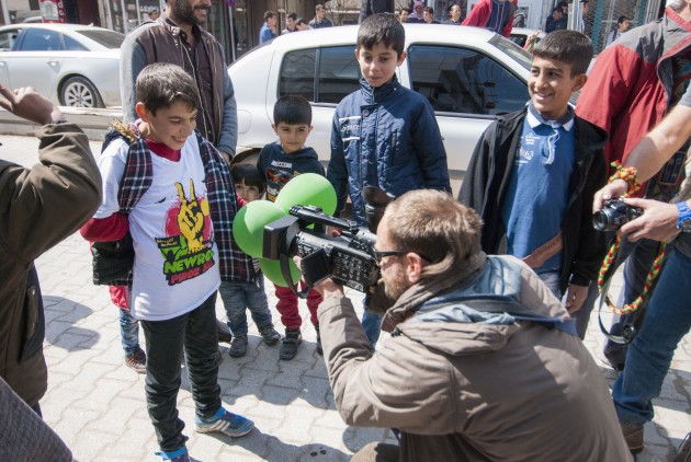 Terra di frontiera per lo stato turco, terra di passaggio per il popolo curdo. A Suruc c’è ancora clima di festa per il recente Newroz. Un ragazzino ci accoglie con una bandiera di Ocalan grande quanto lui. Nascondersi dietro la sua icona, qui, significa affermare la propria identità. Andiamo alla municipalità per un incontro con Mustafa Dogal, diplomatico del Congresso Democratico, da sei mesi in città per gestire la crisi degli sfollati da Kobane. “Abbiamo accolto complessivamente in tutto 126mila rifugiati dalla Siria, in pratica raddoppiando la popolazione dell’area – spiega Dogal – qui a Suruc ci sono sei campi profughi per la popolazione del cantone di Kobane. Uno gestito dallo stato turco tramite l’Afad (protezione civile turca), cinque dai compagni curdi. Con la differenza che nei i campi gestiti totalmente dall’autonomia curda i rifugiati sono liberi di muoversi , mentre quello dell’Afad è gestito militarmente, quindi per uscire serve l’autorizzazione. Inoltre al contrario degli altri è stato costruito dopo la liberazione di Kobane. Ma a quel punto i rifugiati non volevano più andare in un campo profughi, volevano tornare a Kobane.”