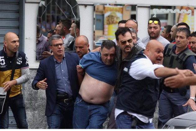 Murolo ha sparato all’impazzata per circa un’ora e mezza. Lo racconta il titolare di una vicina spaghetteria che ha assistito alla tragedia. “Mi sono barricato nel negozio”, racconta “Era freddo, di ghiaccio”, racconta. Un colpo di pistola e uno di fucile sono stati esplosi da Murolo proprio in direzione della spaghetteria e del portone del civico 56. I fori sono visibili sul muro, a terra i bossoli.