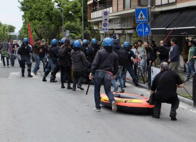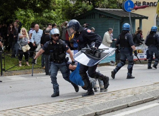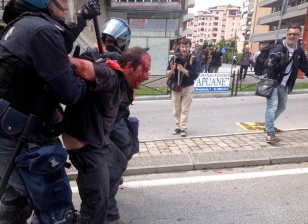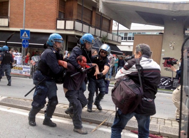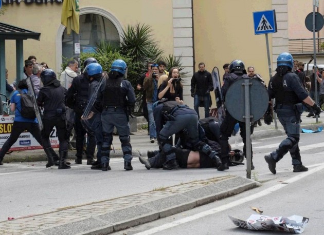 Il tour elettorale di Matteo Salvini per le Regionali in Toscana diventa di nuovo un percorso di contestazioni, cordoni di forze dell’ordine, questa volta anche di scontri, feriti e fermi. A Massa la polizia ha caricato i manifestanti che hanno tentato di sfondare i picchetti della polizia a protezione dell’area del comizio del leader della Lega Nord: le manganellate hanno provocato due feriti (padre e figlio) e diversi contusi. A Viareggio l’auto del segretario del Carroccio è stata accerchiata e colpita, mentre il suo comizio è durato solo 10 minuti per via delle grida e del lancio di uova. “Io non mi fermo, non mi spavento – replica il leader del Carroccio in serata al Tg4 – ma mi spaventa l’idiozia di certa gente che non si ferma nemmeno davanti a mamme e bambini”.