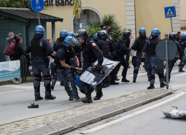 A Massa per acclamare Salvini erano in 150, per contestarlo circa 200. “Sui gommoni ci vogliamo i padroni” si leggeva su uno degli striscioni. A prendere parte alle proteste militanti di sinistra, centri sociali di Massa e Carrara, Carc, anarchici di Carrara e associazioni politico culturali antifasciste. Tra i presenti tanti studenti e anche qualche consigliere comunale. Un primo lancio di uova, arance e fumogeni ha anticipato lo sfondamento dei manifestanti dei blocchi della polizia. Una volta che i manifestanti hanno superato il cordone del reparto mobile sono partite le manganellate. I feriti sono stati due: entrambi sono stati portati in ospedale in ambulanza. Sono padre e figlio: quest’ultimo è stato fermato per resistenza a pubblico ufficiale per aver difeso il primo.