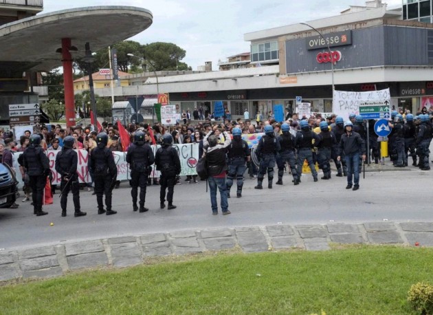Salvini ha anche affrontato – a distanza – i manifestanti: “Mi stanno urlando razzista da là – ha detto dal palco – Hanno bloccato un’intera città per non farmi parlare e hanno costretto al superlavoro le forze dell’ordine, poi parlano di democrazia. Se andassero a lavorare in un centro per anziani o a fare un po’ di volontariato, forse sarebbero più credibili”. I tafferugli, in quel momento, non erano ancora avvenuti. Nel corso del comizio, durato meno di mezz’ora, Salvini, le cui parole grazie ai microfoni venivano sentite anche dai manifestanti, aveva parlato del caso della 12enne picchiata a Terni perché portava il crocifisso: “Avete letto del pestaggio per una catenina col crocifisso? Io dico: se non ti piace il crocifisso tornatene a casa tua, prendi un barcone, un aereo, un deltaplano ma lascia l’Italia”. E sempre sugli immigrati ha insistito: “Vi sembra possibile che chi scappa da una guerra arrivi a Livorno (in realtà era Campiglia, vicino a Piombino, ndr) e chieda la tv a colori? Qualcuno ci sta prendendo in giro e secondo me qualche cooperativa rossa ci sta guadagnando soldi con questi sbarchi”.