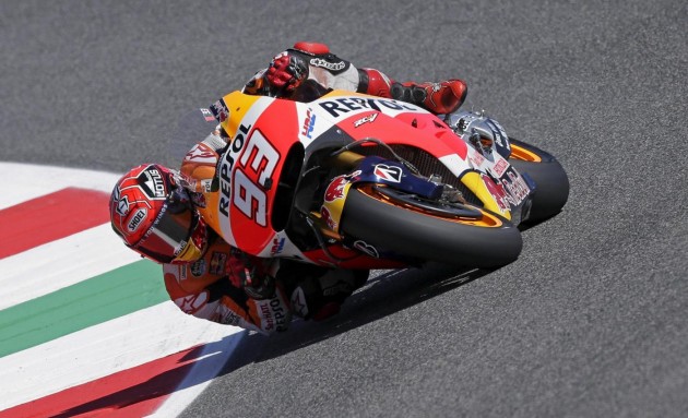 Marc Marquez prende una curva durante prova pratica del Mugello