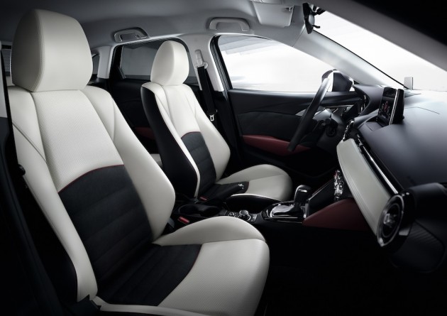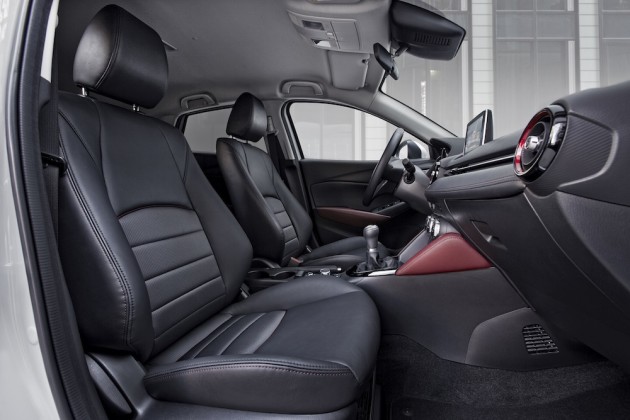 Anche il 1.5 a gasolio dà soddisfazioni. Nonostante la potenza contenuta (105 CV ottenuti con un rapporto di compressione basso, 14,8:1, per contenere i consumi) la CX-3 si muove agile, complice la massa molto contenuta. Fra il manuale e l’automatico, meglio il manuale, un bel sei marce ben manovrabile; non che l’automatico vada male, anzi, ma la appesantisce un po’. Il vero punto di forza della Mazda CX-3, comunque, è l’abitacolo: la plancia è bella e ben fatta, rivestita di materiali piacevoli al tatto senza essere sovraccarica, in ossequio all’aspirazione “premium” del marchio. La posizione di guida corretta si trova in un istante, grazie alle ampie regolazioni che comprendono la profondità del volante e l‘altezza del sedile, utile per accontentare sia chi guida “sportivo” sia chi vuole stare in alto.
