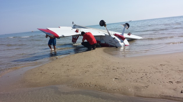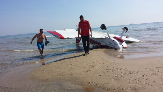 La pattuglia era composta da quattro velivoli che si sono divisi a coppie per fare un numero a volo rovesciato. Quando si sono rigirati per riprendere la posizione due si sono toccati con l’ala. Uno ha avuto l’ala spezzata ed è precipitato a picco in acqua, mentre l’altro è riuscito a planare e si è fermato, ammarando, poco distante della riva all’altezza dello chalet Copacabana a Tortoreto.