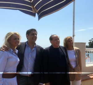 Silvio Berlusconi a Bocca di Magra (La Spezia) con il candidato alla presidenza della Regione Liguria Giovanni Toti e con Francesca Pascale, 31 Maggio 2015. ANSA