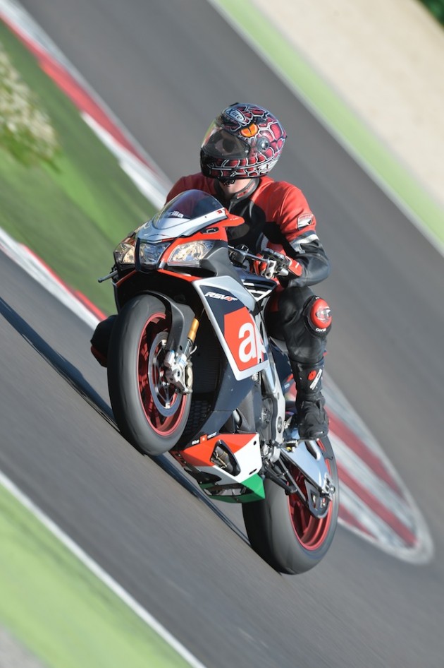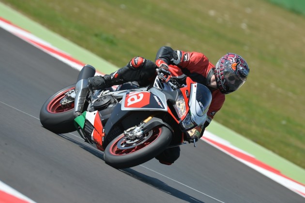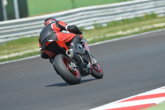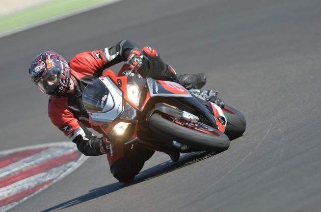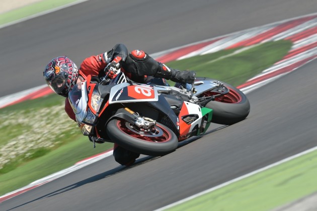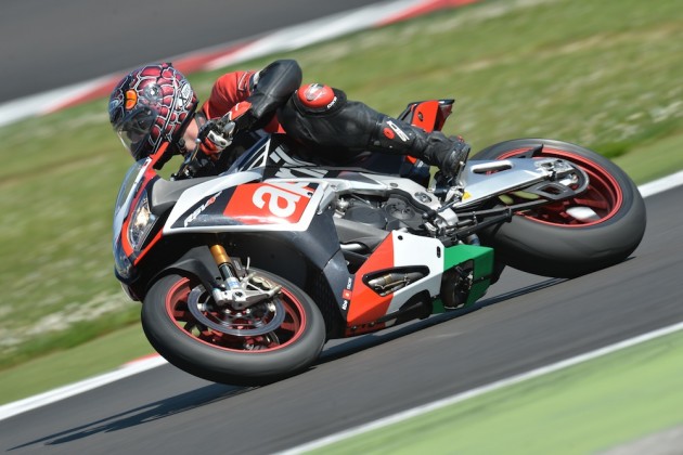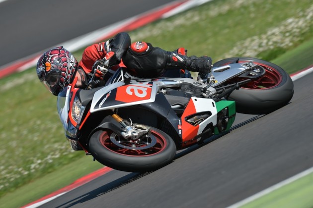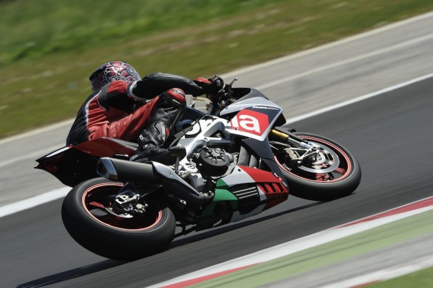 Motore: Aprilia 4 cilindri a V longitudinale di 65°; alesaggio e corsa 78 x 52.3 mm; cilindrata totale 999.6 cc; raffreddamento a liquido, distribuzione bialbero a camme (DOHC), quattro valvole per cilindro. Potenza max all’albero 201 CV a 13.000 rpm; coppia max all’albero 115 Nm a 10.500 rpm
