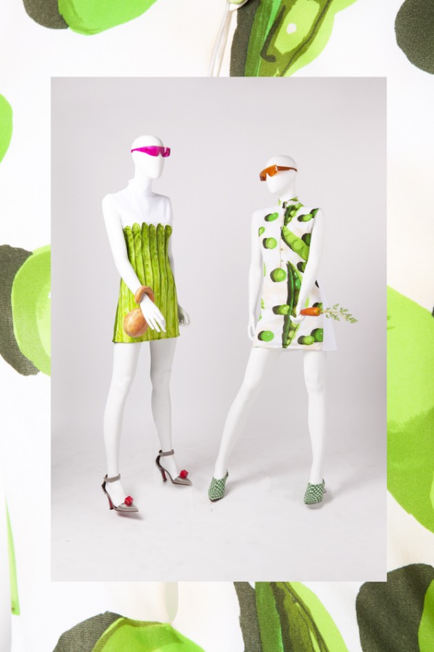 Molti dei 160 abiti esposti sono stati realizzati con materiali di riciclo e nel pieno rispetto dell’ambiente. Ma l’elemento chiave resta l’ironia. E di ironia ne sa qualcosa Agatha Ruiz de la Prada, che su uno dei suoi vestiti fa “cuocere” un uovo al tegamino. Valentino, invece, con il cibo aveva imparato a giocarci già nel 1968, quando firmò un abito in chiffon con una stampa a noci.