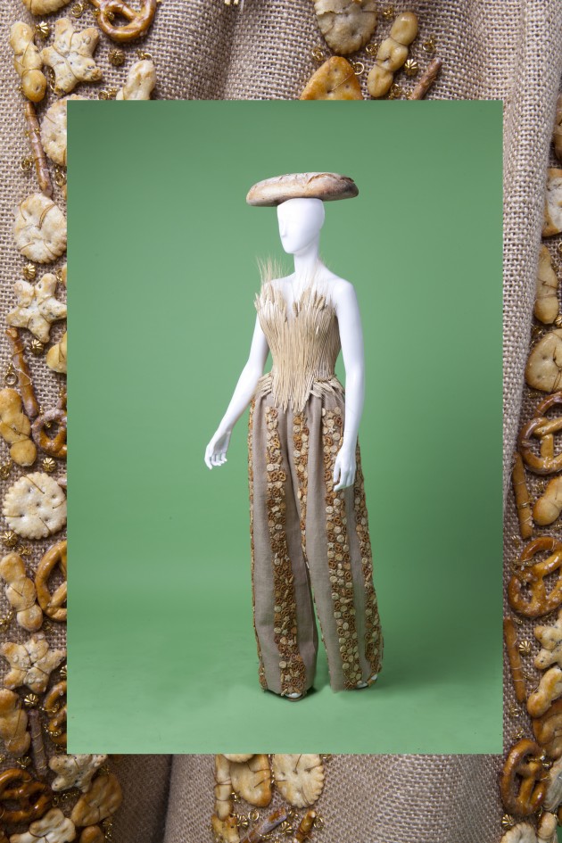 L’ultimo in ordine di tempo è stato Gai Mattiolo. Per la collezione presentata a gennaio durante Altaroma, la maison ha puntato tutto sul connubio tra moda e cibo. A fare da protagonista è stato il “Bread dress”, una salopette lunga realizzata con canvas e grano e decorata con salatini. La mostra “L’eleganza del cibo. Tales about food and fashion”, curata da Stefano Dominella e Bonizza Giordani Aragno, parte proprio da qui. Nella suggestiva cornice romana dei Mercati di Traiano si rincorrono gli abiti che, nel corso degli ultimi sessant’anni, hanno sposato il connubio tra moda e cibo. Ma questa è soprattutto un’occasione per celebrare l’Expo di Milano: la mostra, infatti, resterà aperta fino al 1 novembre e segue in tutto e per tutto lo spirito dell’esposizione universale.