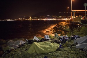 Nella foto: Migranti che dormono sugli scogli a pochi metri dal confine con la Francia