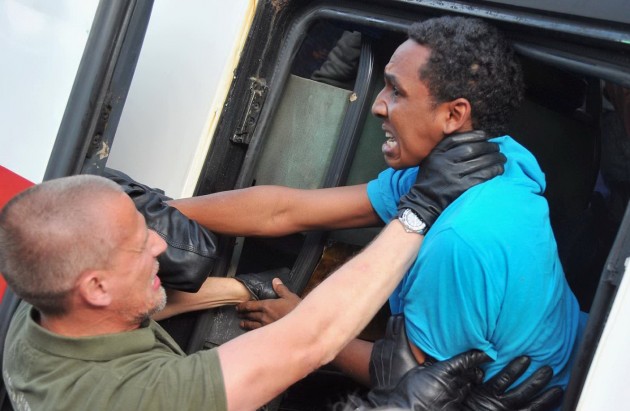 A Ventimiglia è iniziato poco prima delle 8 del 16 giugno lo sgombero dei migranti che si trovavano sulla scogliera di Ponte San Ludovico e in una pineta nei pressi del confine francese. L’operazione è stata condotta da carabinieri e polizia. Ci sono stati momenti di tensione quando qualche migrante ha opposto resistenza passiva, gettandosi a terra. La situazione non è degenerata, ma alcuni stranieri sono stati portati via di forza, mentre tentavano di aggrapparsi a cartelli stradali e pali. Due sono anche stati fermati per resistenza a pubblico ufficiale. Altri hanno tentato di fuggire e sono stati inseguiti e bloccati. Altri ancora, nei pressi della scogliera, sono rimasti in piedi sul muretto che la separa dalla strada, protestando in direzione delle forze dell’ordine: “Dove sono i diritti umani?”, hanno gridato. Due agenti invece, hanno riportato contusioni e lievi ferite quando hanno sollevato di peso un ragazzo che ha opposto resistenza tirando qualche calcio.