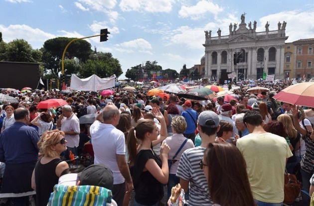 Giovanardi precisa poi che “il 70% degli italiani è contrario al ddl Cirinnà” – che da martedì sarà in discussione al Senato – e si riferisce “sia alle adozioni che all’utero in affitto. Questa piazza – prosegue – dimostra che quel che tentano di fare una parte del Pd e i Cinque Stelle è una sopraffazione. Se avessero vinto le elezioni, avrebbero il diritto di agire in questo senso, ma così non è”. Assente il segretario della Lega Nord Matteo Salvini che però su Facebook appoggia l’evento: “Un abbraccio – scrive sul social network – alle mamme e ai papà che stanno pacificamente manifestando a Roma, per difendere il futuro dei loro bambini”.