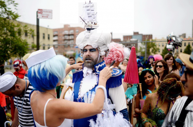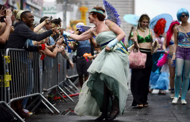 “Le alghe del tuo vicino, ti sembran più verdi sai, vorresti andar sulla terra, non sai che gran sbaglio fai”: cantavano così le creature marine del popolare cartone animato La Sirenetta, ignare che “sulla terra”, una volta all’anno, va in scena qualcosa che somiglia al loro mondo marino. E’ la Mermaid Parade, arrivata quest’anno alla sua 33esima edizione. Ogni anno dal 1983, il sabato più vicino all’inizio dell’estate decine di persone si ritrovano per le vie di Coney Island sfoggiando costumi da sirenetta, pirati, pesci e creature marine d’ogni sorta.
