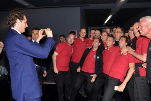 Nella foto : John Elkann fotografa gli operai con Sergio Marchionne