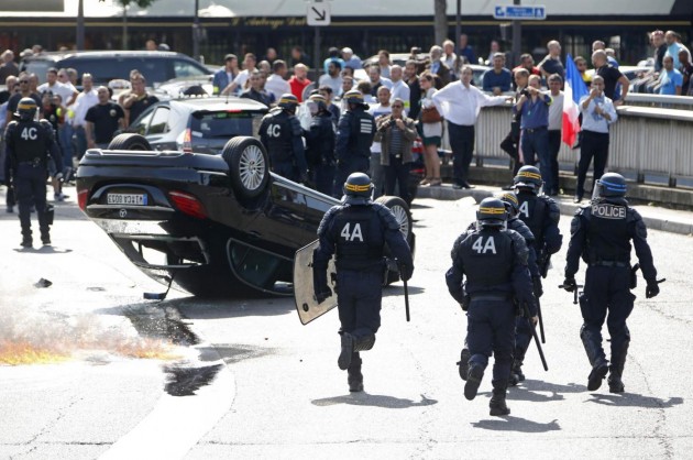 Tafferugli, cartelli di protesta, copertoni in fiamme, macchine ribaltate: è questo lo scenario parigino di oggi, 25 giugno, dove vanno in scena le proteste dei tassisti francesi nei confronti di UberPop. L’app di ride sharing sta mandando su tutte le furie i guidatori di taxi, che hanno bloccato l’accesso ai principali aeroporti e alle stazioni di Parigi, tanto che i poliziotti in tenuta antisommossa sono intervenuti con il lancio di lacrimogeni: “Gli ingressi in auto sono completamente bloccati. L’unico modo per arrivare in aeroporto è il treno”, ha riferito in un comunicato Aeroports de Paris, la società che gestisce gli scali parigini di Orly e Roissy Charles de Gaulle. Bloccato anche l’accesso alla stazione della Gare du Nord. E alcuni incidenti si sono verificati anche all’aeroporto di Marsiglia-Provenza, nel sud della Francia. “Siamo spiacenti di tenere gli automobilisti e i clienti in ostaggio. Ma dobbiamo far fronte alle continue provocazioni di Uber a cui possiamo rispondere in un solo modo, con la fermezza”, ha osservato un tassista della società Taxi G7 intervenuto sui media francesi.