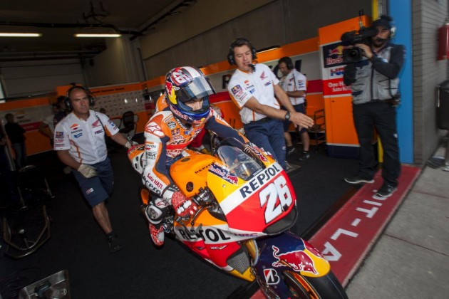 Valentino Rossi conquista la pole position. Dietro, il pilota della Suzuki Aleix Espargaró, terzo Marc Marquez della Honda. Qaurta posizione per il compagno di scuderia Daniel Pedrosa, seguito dal pilota della Yamaha Tech3, team satellite Yamaha, Pol Espargaró. Male le Ducati: Andrea Iannone conclude in sesta posizione e Andrea Dovizioso in decima. Malissimo Jorge Lorenzo. Per lui solo l’ottavo posto.