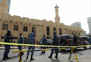 (150626) — KUWAIT CITY, June 26, 2015 (Xinhua) — Security forces stand guard outside the Imam Sadiq Mosque following a suicide bomb blast in Kuwait city, the capital of Kuwait, June 26, 2015. Kuwait’s interior ministry said on Friday that 25 people were killed in the suicide bomb strike on Imam Sadiq Mosque, a Shiite Muslim mosque, while the Islamic State (IS) militant group claimed responsibility for the attack. (Xinhua) (djj)