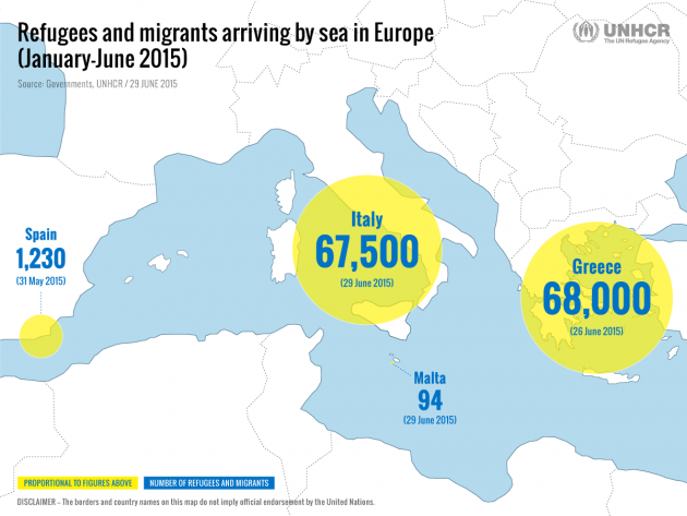 E’ cifra record quella annunciata dall’Alto commissariato Onu per i rifugiati (Unhcr): nei primi sei mesi del 2015, 137.000 rifugiati e migranti hanno attraversato il Mediterraneo verso l’Europa. Si tratta dell’83% in più, rispetto ai 75.000 dello stesso periodo dello scorso anno. La maggioranza dei migranti è considerata in fuga da guerre, conflitti o persecuzioni e può ambire allo status di rifugiato. La crisi del Mediterraneo viene quindi considerata dall’Onu di “proporzioni storiche”.