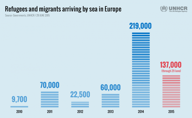 Migranti, Unhcr: “137.000 verso l’Europa in prima metà 2015, è record”