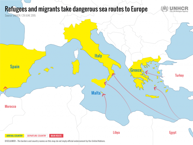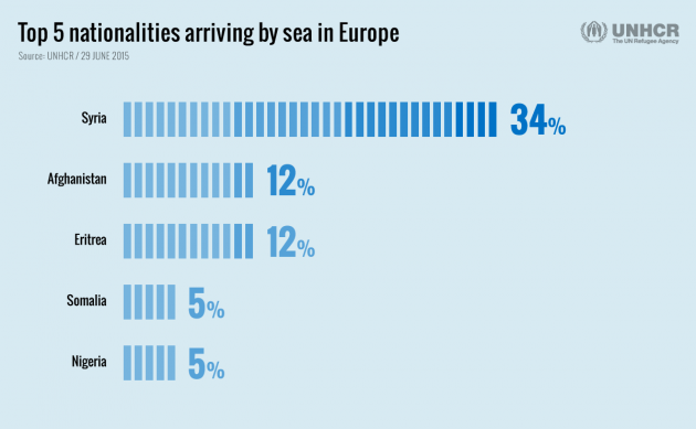 Dei 137mila un terzo è giunto via mare in Italia o in Grecia dalla Siria, Paese i cui cittadini possono esser considerati rifugiati o beneficiari di altre forme di protezione. I Paesi di provenienza che seguono sono l’Afghanistan e l’Eritrea. Ed anche in questo caso si tratta di potenziali rifugiati. Il rapporto segnala anche che la rotta Mediterraneo centrale (dal nord Africa verso l’Italia) è stata quindi superata dalla via del Mediterraneo orientale (dalla Turchia verso la Grecia).