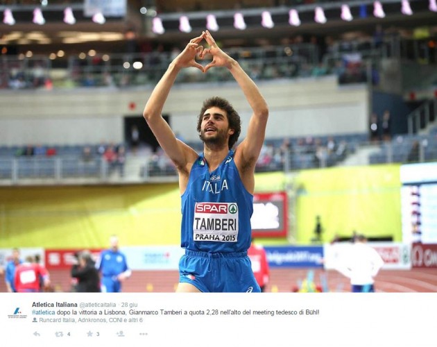 Gianmarco Tamberi, 23 anni, marchigiano, ha eguagliato il record italiano di salto in alto. Il 2 luglio l’atleta delle Fiamme gialle ha vinto al meeting di Colonia, saltando 2 metri e 34. Dopo due stagioni segnate dagli infortuni, Tamberi è riuscito a tornare ai livelli di forma del 2013, quando agli Europei indoor riuscì a saltare 2 metri e 31.