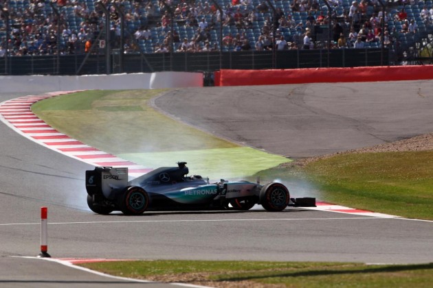Pochi minuti più tardi, nello stesso punto, anche il pilota della McLaren-Honda Fernando Alonso è finito fuori pista. Al contrario di Grosjean, lo spagnolo è riuscito a “galleggiare” sulla sabbia e a rientrare in pista. La manovra è stata sottolineata da boati e applausi da parte del pubblico di Silverstone, impressionato dalla tecnica del pilota.
