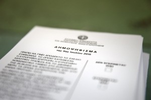 A ballot reads "Referendum of the 5th of July 2015" at an Athens high school that will be used as a polling station for Sunday’s referendum in Greece, July 4, 2015. If a ‘No’ in Sunday’s referendum eventually takes Greece out of Europe’s single currency, any "new drachma" or temporary payment unit could be worth as little as a fifth of the euro now in circulation. REUTERS/Alkis Konstantinidis