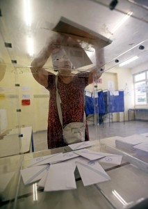 A woman casts her ballot during a referendum vote in Athens, Greece, July 5, 2015. Greece voted on Sunday on whether to accept more austerity in exchange for international aid, in a high-stakes referendum likely to determine whether it leaves the euro-currency area after seven years of economic pain. REUTERS/Jean-Paul Pelissier