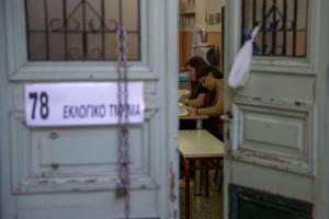 Voting officials are seen inside a polling station during a referendum in Athens, Greece, July 5, 2015. Greece voted on Sunday on whether to accept more austerity in exchange for international aid, in a high-stakes referendum likely to determine whether it leaves the euro-currency area after seven years of economic pain. REUTERS/Marko Djurica