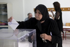 A woman casts her ballot at a polling station at the village of Anogeia in the island of Crete, Greece July 5, 2015. Greeks voted on Sunday whether to accept or reject the tough terms of an aid offer to stave off financial collapse, in a referendum that may determine their future in Europe’s common currency. REUTERS/Stefanos Rapines