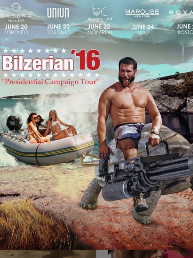 “È da più di 100 anni che manca un presidente con la barba. Compra una maglietta e supporta la campagna su www.Bilzerian16.com“. Oltre al video caricato sul proprio profilo Facebook, questo per ora è l’unico slogan concreto della campagna elettorale di Dan Bilzerian: cliccando sul sito si possono acquistare t-shirt e canottiere per finanziare la corsa presidenziale. Come first lady Dan potrebbe avere una delle tre ragazze che sta frequentando più o meno contemporaneamente in questi ultimi mesi: la playmate Jessa Hinton; la bella Rosie Roff, molto amante come Bilzerian del fitness e delle armi; o Mabelynn Capelu, miss California 2013. In attesa dell’ufficializzazione della candidatura vera e propria una delle ultime mete di viaggio è stata proprio l’Italia, più precisamente Roma: lo testimonia un selfie gineceo all’interno del Colosseo.