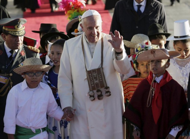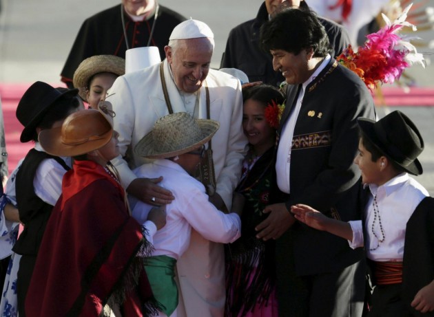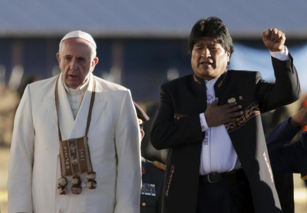 “Se la politica è dominata dalla speculazione finanziaria o l’economia si regge solo sul paradigma tecnocratico e utilitaristico della massima produzione, non si potranno neppure comprendere, né tantomeno risolvere i grandi problemi che affliggono l’umanità”. È il messaggio che Papa Francesco ha rivolto al presidente Evo Morales appena giunto in Bolivia, seconda tappa del suo viaggio in America latina dopo l’Ecuador. “Benvenuto fratello Papa Francesco”, lo ha accolto Morales con due doni particolari: prima in aeroporto la “chuspa”, un astuccio all’interno del quale in Bolivia tengono le foglie di coca non raffinate per masticarle e per usarle per il tè; poi nel Palazzo del Governo un crocifisso su falce e martello. Morales si è spinto oltre e ha messo al collo del Papa un’onorificenza la cui placca riproduce la stessa immagine. Il presidente ha definito Bergoglio “il Papa dei poveri”, sottolineando che “oggi chi tradisce un povero tradisce Papa Francesco”.