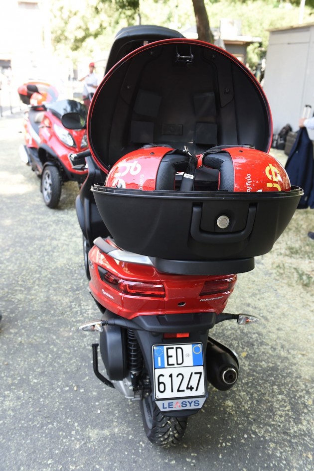 Le moto si individuano sulla mappa grazie all’apposita app, previa registrazione gratuita; le operazioni di noleggio si gestiscono attraverso uno schermo tattile posizionato sotto la sella. Il costo? Più elevato di quello delle auto: 0,35 euro al minuto per i primi 50 km, dopo i quali si aggiunge un costo aggiuntivo di 0,35 euro al chilometro. Nel prezzo è compreso l’uso dei due caschi, così come il carburante, l’assicurazione (con franchigia di 250 euro) e, come per tutte le moto, anche l’accesso all’area C. Le operazioni di noleggio dell’Mp3 sono leggermente complicate, per chi non conosce il mezzo, dalla presenza del freno a mano e del blocco delle sospensioni: nel video tutorial in fondo alla pagina le operazioni sono spiegate nel dettaglio. Gli scooter di Enjoy, comunque, sono stati modificati rispetto al modello tradizionale: la velocità è limitata a 90 km/h e sono state aggiunte due telecamere OctoCam, una anteriore e una posteriore, che si attivano in caso di incidente.