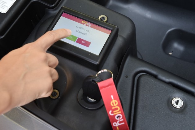 3) aprire lo scooter: una volta raggiunta, la moto si sblocca cliccando “apri veicolo” sull’app, oppure inviando un sms con il codice identificativo visibile sul parabrezza, oppure ancora telefonando al servizio clienti. Sollevando la sella, appare lo schermo touch che permette di indicare le condizioni del veicolo e di confermare la presenza dei caschi. Inserendo il Pin personale, si può finalmente prendere la chiave
