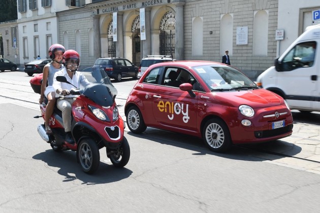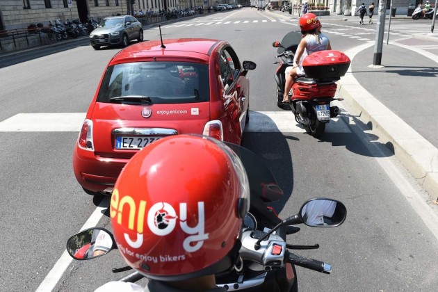 “Il primo servizio al mondo di scooter sharing free floating”, così lo definisce il Comune di Milano, secondo cui – parola dell’assessore alla mobilità Maran – il capoluogo lombardo “si conferma la città in cui le cose accadono prima”. Prende il via oggi, proprio da Milano, il nuovo servizio di scooter condivisi di Enjoy. Anche questa volta, come con le Fiat 500 e 500L del car sharing, l’Eni collabora con una azienda italiana: la Piaggio fornisce 150 scooter a tre ruote Mp3, ora a disposizione di chi ha una patente italiana di categoria A e B (a partire dai 21 anni di età per le patenti A e B, patente A2 e 21 anni di età se presa prima del 19 gennaio 2013). E come per il car sharing di Enjoy, ma anche di altri operatori fra cui Car2go, il servizio è “free floating”, “a flusso libero”: le moto possono essere posteggiate ovunque in città, purché nei parcheggi per moto (e non sulle strisce blu, come permesso invece al car sharing).
