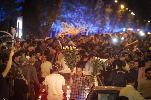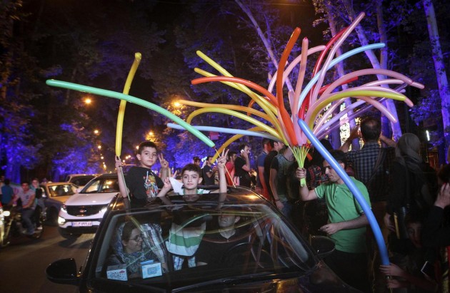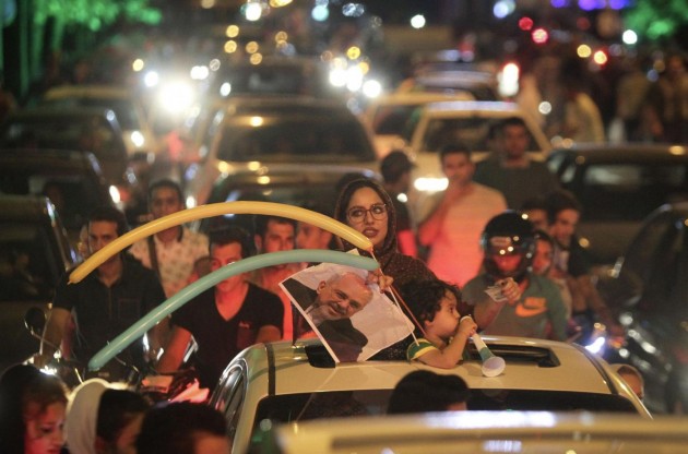 Giovani che sventolano bandiere dell’Iran e cantano l’inno nazionale, cori di festa e palloncini colorati, le foto dei negoziatori dell’accordo sul nucleare iraniano mostrate con orgoglio e balli fino all’alba. Così migliaia di persone a Teheran hanno accolto la squadra di negoziatori che è stata impegnata per 18 giorni a Vienna. Gli iraniani hanno dovuto attendere la sera per sfogare tutta la loro gioia, a causa della rottura del digiuno di Ramadan, poi nella capitale è partito il carosello di auto che ha bloccato il traffico per ore.