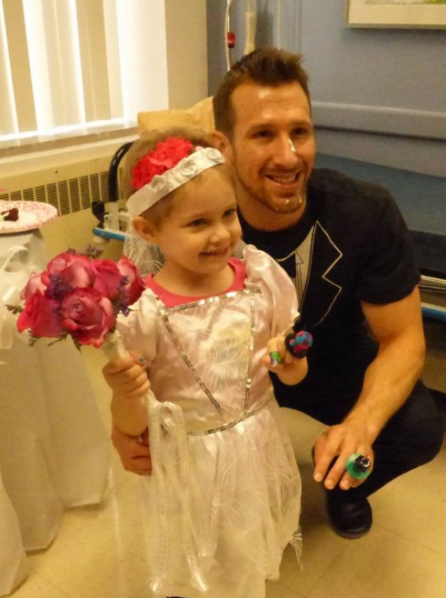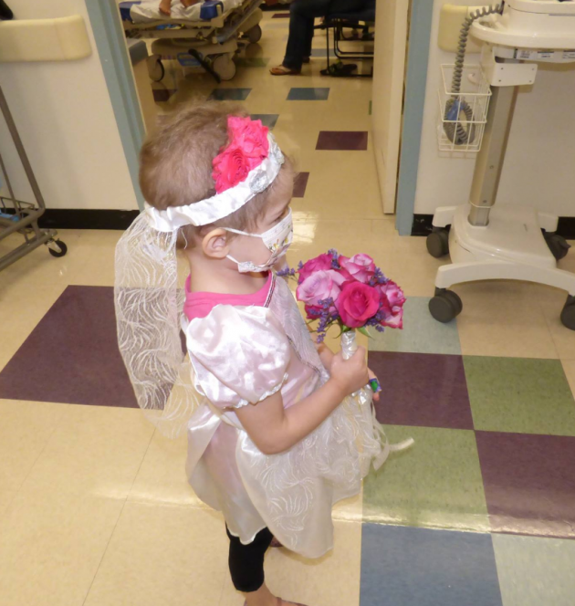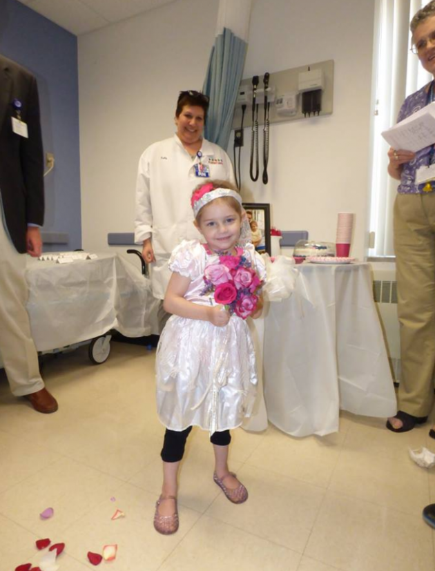 Una bimba di 4 anni malata di leucemia ha sposato il suo infermiere. Il dolce matrimonio da sogno, che in pochi giorni è stato visualizzato da oltre 14milioni di utenti su Facebook, è stato celebrato il 16 luglio nell’Albany Medical Center Hospital dello stato di New York dove la piccola Abby Sayles, la sposa, è ricoverata da un anno. Lo sposo si chiama Matt Hickling, ha 29 anni, ed è uno degli infermieri che ha aiutato la bambina nelle sue lunghe cure. Non più di 24 ore prima delle “nozze”, era stata Abby a confessare alla mamma il desiderio di poter sposare il suo infermiere preferito nella clinica. Ed in nemmeno mezza giornata, il sogno è diventato realtà. Il personale dell’Albany Medical si è dato immediatamente da fare e in neanche dodici ore il rito è stato formalmente celebrato in una delle corsie dell’ospedale inondata di petali di rosa. Abby era bellissima come tutte le spose: un abitino bianco, una coroncina di raso attorno alla fronte e un bel mazzo di quattro rose color rosa antico. Matt invece si è presentato all’altare con una t-shirt nera con sopra stampigliato uno smoking, pantaloni e zoccoli da ospedale neri. Ai due sposi non è mancato nulla: i colleghi di Hickling hanno messo a disposizione dei veri anelli per il matrimonio, una torta nuziale, parecchi sacchi di confetti e perfino un’automobilina giocattolo di colore rosa con la classica scritta “just married” e gli altrettanto tradizionali barattoli legati con dei fili al parafango.