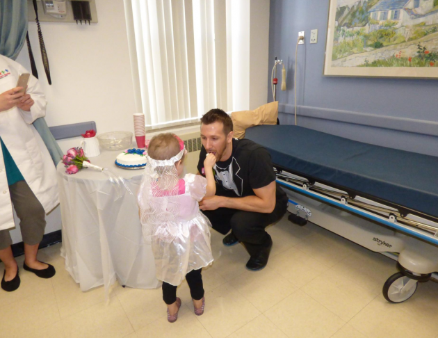 “Abitualmente non posto mai nulla che riguarda il mio lavoro per non violare la privacy dei miei pazienti, ma la mamma di Abby mi ha dato il permesso di postare le foto e di raccontare la storia”, ha scritto Matt Hickling sul suo profilo Facebook. “Quando Abby mi ha chiesto timidamente di sposarla non ho esitato un secondo a dirle di sì. Ci siamo abbracciati e abbiamo sigillato le nozze infilandoci a vicenda l’anello di matrimonio – ha continuato Matt – dopo abbiamo fatto una lunga passeggiata sulla nostra auto lungo il corridoio della clinica (confesso di aver spinto), infine siamo ritornati nella stanza di Abby per tagliare la torta e le foto di rito”. Entusiasti i colleghi dell’uomo hanno organizzato l’intera cerimonia e hanno canticchiato l’inno nuziale.