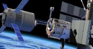 An undated computer-generated image of European unmanned cargo resupply spacecraft ‘Johannes Kepler ATV-2’ in the docking phase.
