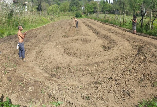 La terra lavorata principalmente a mano e in base ai principi dell’agricoltura sinergica
