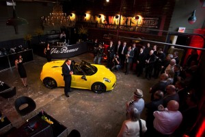 Reid Bigland, Head of Alfa Romeo Brand, FCA – North America, unveiled the all-new 2015 Alfa Romeo 4C Spider to a top list of automotive media and special guests for the first time in Canada on Feb. 11, the eve of media day for the 2015 Canadian International AutoShow. The Giallo Prototypo coloured vehicle was air-freighted in from Modena, Italy for this special event at The Gooderham Lounge, Airship 37 in Toronto’s historic Distillery District.