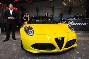 Reid Bigland, Head of Alfa Romeo Brand, FCA – North America, unveiled the all-new 2015 Alfa Romeo 4C Spider to a top list of automotive media and special guests for the first time in Canada on Feb. 11, the eve of media day for the 2015 Canadian International AutoShow. The Giallo Prototypo coloured vehicle was air-freighted in from Modena, Italy for this special event at The Gooderham Lounge, Airship 37 in Toronto’s historic Distillery District.