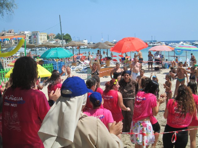 Tra gli ombrelloni e le ragazze in monokini, spunta anche il saio francescano che balla, canta e fa il Dj sotto gli occhi attoniti di chi non avrebbe mai immaginato di ritrovarsi dei frati al mare. “Quando li abbiamo visti la prima volta – spiega Giovanni, arrivato da Reggio Calabria con la famiglia – credevamo fossero dei testimoni di Geova poi abbiamo visto il saio e….ci siamo tranquillizzati”. A molti il saio ha fatto pensare subito a San Francesco, altri non ne vogliono proprio sapere di parlare di Dio davanti al mare, ma sono pochi: “Certo, uno si domanda perché son qui, che vogliono da noi. Ma ognuno fa il suo mestiere. È’ quella è’ la loro vocazione. Va rispettata”, spiega Lucio, un giovane mondellese che fa il bagnino.