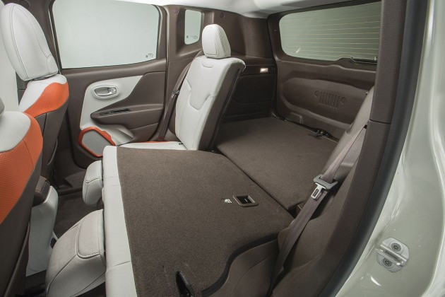 E se la linea esterna, come dicevamo, è molto particolare, gli interni sono più facili da digerire per tutti, ben disegnati e funzionali, spaziosi anche per i passeggeri posteriori. Al di là dei sedili comodi, del bracciolo centrale e delle tante tasche, sulla Renegade ci si stupisce ogni giorno per qualche particolare che si scopre a mano a mano che la si usa: il ragnetto inciso nello sportellino del carburante, la sagoma di una piccola Jeep che spunta dal bordo del parabrezza, la scritta “to new adventures” intorno al tasto di avviamento del motore, le decine di simboli Jeep – due fari tondi, sette feritorie – distribuiti in tutto l’abitacolo. Certo, decorazioni che non hanno nessuna funzione pratica, ma che insieme ai materiali ben assortiti danno l’impressione di cura e qualità.