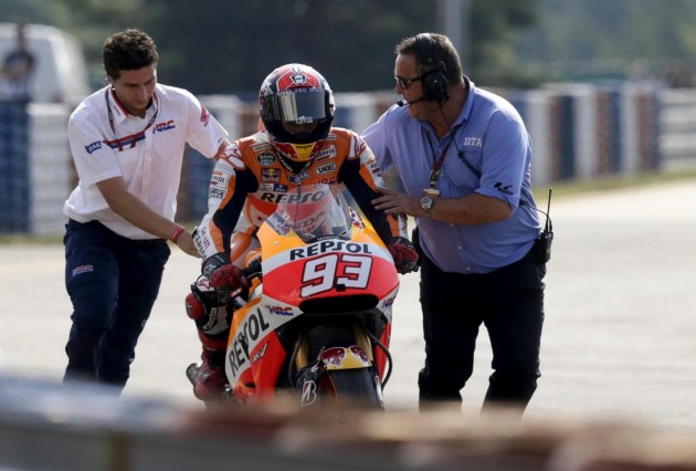 MotoGp Brno, Marc Marquez davanti a tutti nelle libere. Rossi cade senza danni (Foto)