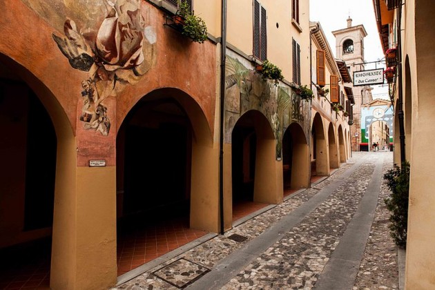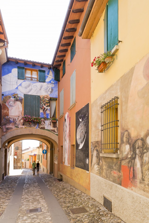 Se non fosse una città dalla rocca medievale simbolo della sua storia antica, la si potrebbe confondere per una galleria d’arte a cielo aperto. Dozza Imolese, 6.600 abitanti alle porte di Bologna, del resto, non è uno dei borghi più belli d’Italia solo per gli edifici in muratura che raccontano di un Comune dal passato remoto quanto l’età del bronzo. Da cinquant’anni, infatti, i palazzi, le case, le scuole e gli uffici di Dozza sono anche 150 tele d’artista, che raffigurano i volti e i colori dell’arte che si trasforma col passare del tempo. Affreschi, murales, stucchi e acrilici che hanno resa Dozza unica nel suo genere.