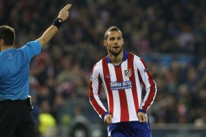 Atletico Madrid’s midfielder Mario Suarez celebrates after scoring the 1-0 during the UEFA Champions League round of 16 second leg soccer match between Atletico Madrid and Bayer Leverkusen at Vicente Calderon stadium in Madrid, central Spain, 17 March 2015. EFE/Kiko Huesca