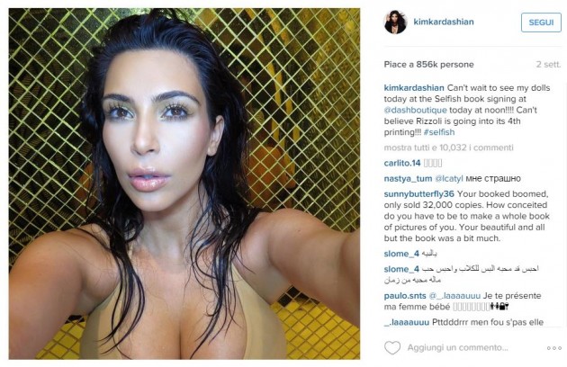 Sul gradino più basso del podio c’è Taylor Swift (43,5 milioni di followers), mentre al secondo posto troviamo Beyoncé (43,9). E al primo? Ovviamente la più famosa delle Kardashian-Jenner, cioè Sua Rotondità Kim Kardashian West, regina del nulla mediatico, imperatrice suprema del chiacchiericcio globale. I suoi followers sono 44 milioni, in pratica gli abitanti dell’Ucraina o del Kenya.
