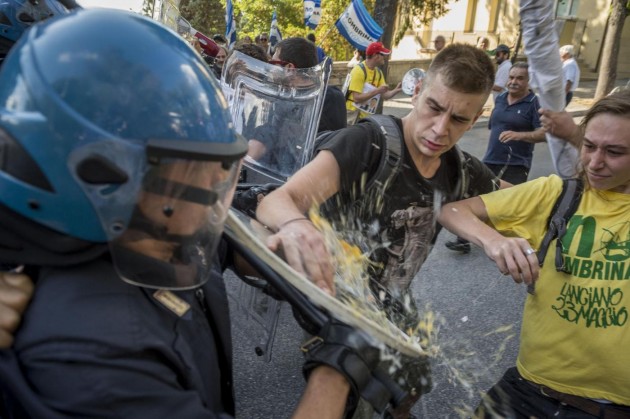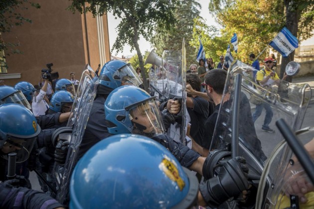 L’Aquila, tensione tra manifestanti e forze dell’ordine: Renzi costretto ad annullare la prima visita