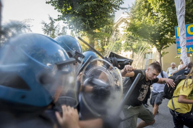 La contestazione a L’Aquila ha costretto Matteo Renzi a un cambio di programma. E’ stata infatti annullata la prima tappa prevista nel capoluogo abruzzese a causa dei tafferugli scoppiati poco prima dell’arrivo del premier tra un nutrito gruppo di persone e le forze dell’ordine. Gli agenti in tenuta antisommossa hanno risposto con spintoni e manganellate ai militanti dei comitati antipetrolizzazione e ad alcuni studenti che hanno forzato i posti di blocco e lanciato fumogeni a pochi metri da palazzo Fibbioni, sede del Comune dove avrebbe dovuto recarsi il presidente del Consiglio.